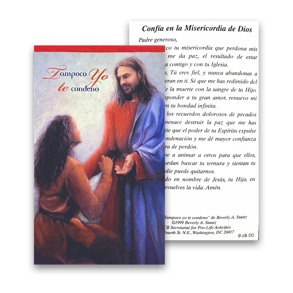 Answers the request of priests for a post-confessional prayer card to help women accept that God has forgiven their sin of abortion.